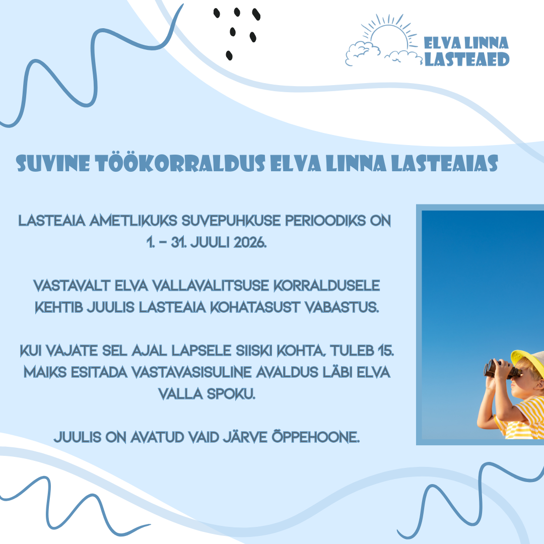 Kui vajate, et Teie laps käiks lasteaias perioodil 01.07–31.07.2026, palume esitada avaldus e-taotluste keskkonnas SPOKU hiljemalt 15. maiks 2026.